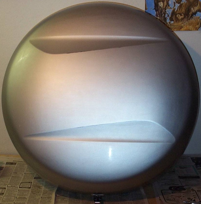 Eine Radabdeckung soll ein Airbrush bekommen. Als Motiv wurde ein Wolfskopf gewählt.